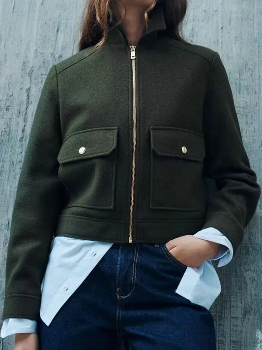 מעיל עור דמוי זמש עם רוכסן הפוך