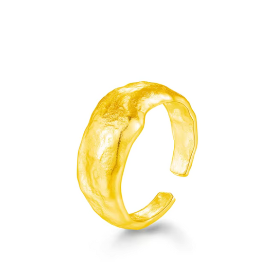 טבעת כליפה רחבה משובצת זירקונים ציפוי זהב 18K