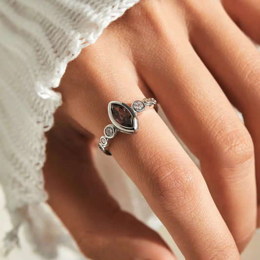 טבעת כסף 925 בשיבוץ זירקוניה אדום כהה