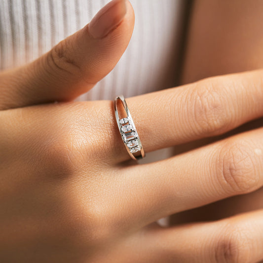 טבעת שני קווים משבצת זירקונים כסף 925