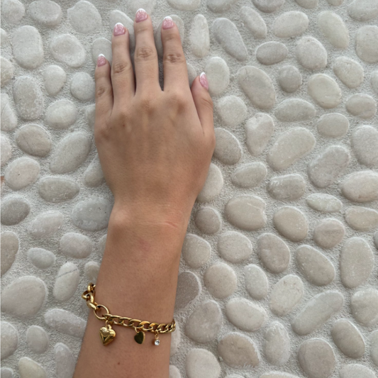 צמיד חוליות עם לבבות ציפוי זהב 18K