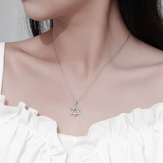 שרשרת כסף 925 עם תליון מוסנייט 0.8 קראט עגול ומבריק במרכז המוקף בזירקונים קטנים