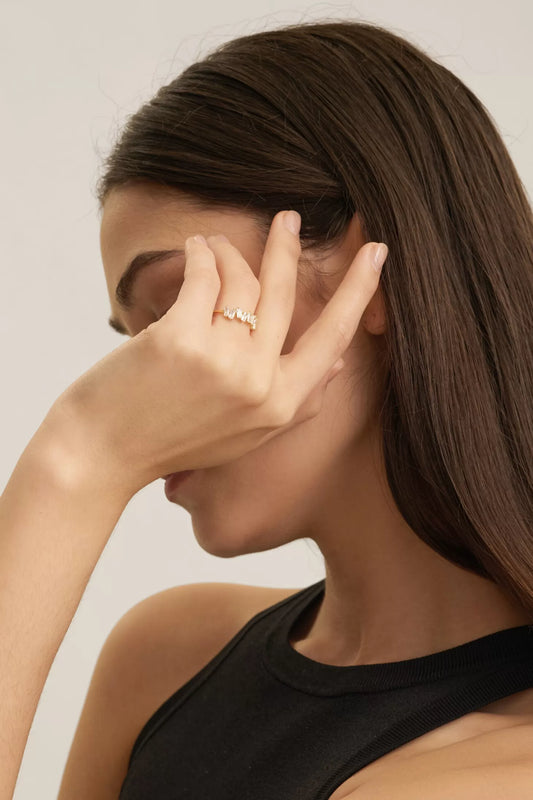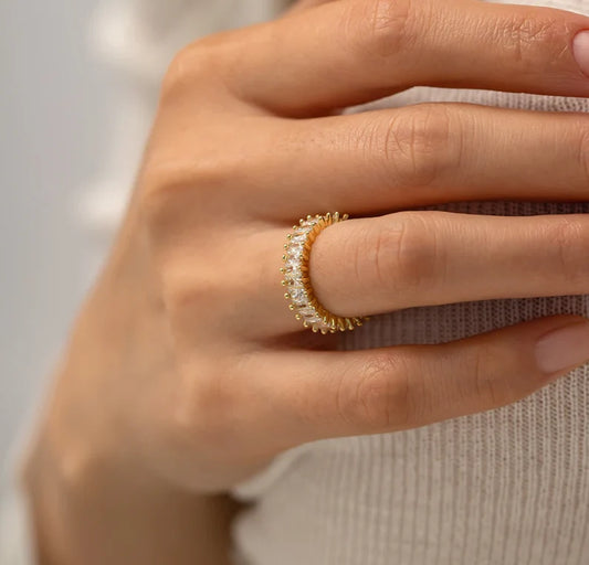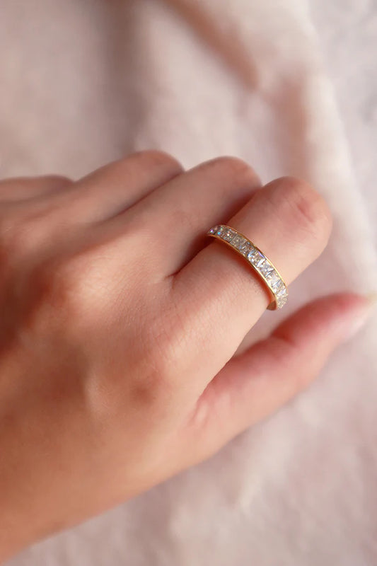 טבעת משובצת זירקונים בצורת מלבנים ציפוי זהב 18K