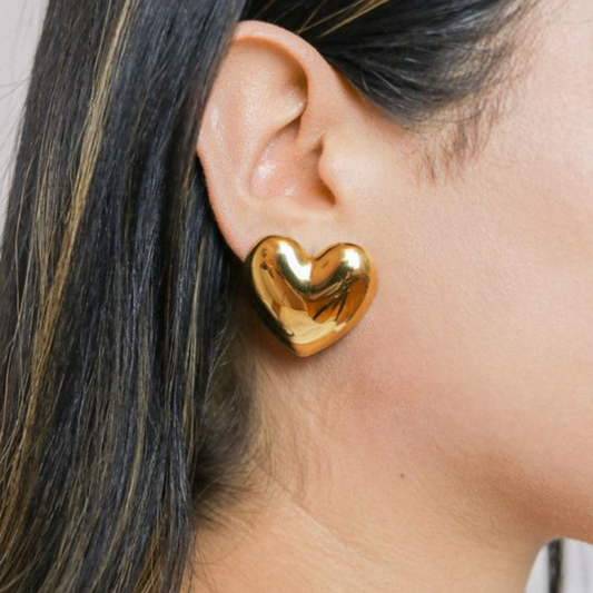 במבצעעגיל לב 3D ציפוי זהב 18K