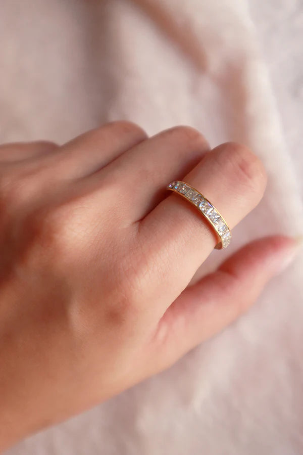 טבעת משובצת זירקונים קלסית ציפוי זהב 18K