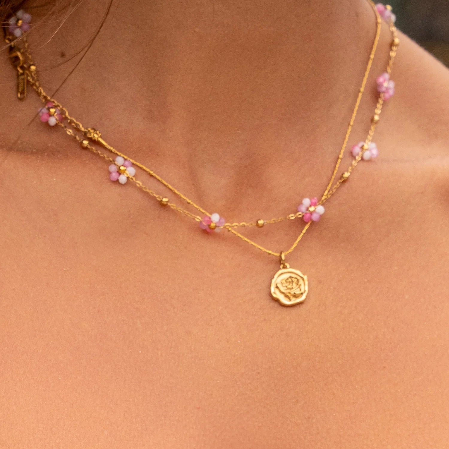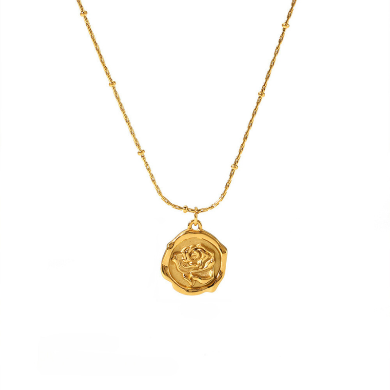 שרשרת עם תליון ציור פרח ציפוי זהב 18K